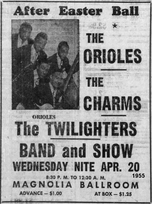 On April 20, they appeared at the Magnolia Ballroom, along with some distinguished company: the Orioles and the Charms.