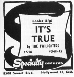 Considering the tremendous volume of releases on Specialty, some songs were bound to be overlooked. "It's True" is a great ballad, and the Twilighters should have done better.