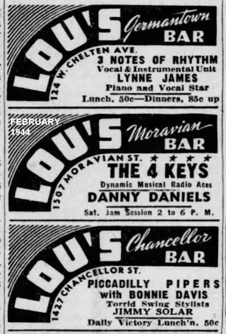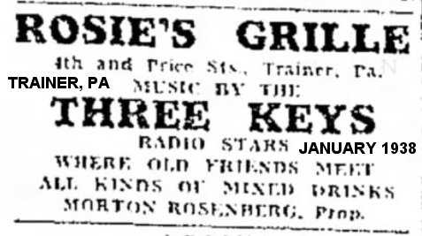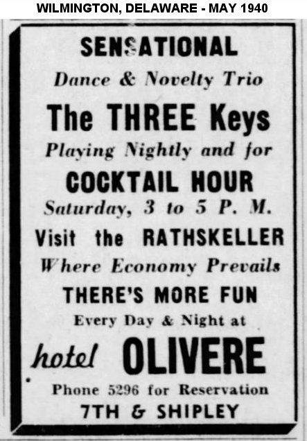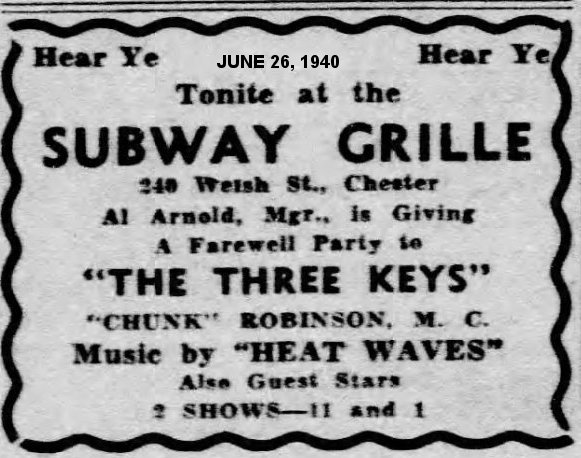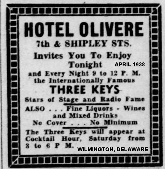 In spite of this, the Delaware County Daily Times of November 17, 1933 reported in its "Among Our Colored Citizens" column: "The Three Keys, Chester's contribution to the radio and theatrical entertainment world, have returned to this city after a successful tour of the European continent." Isn't it a shame that newspapers can't check facts?