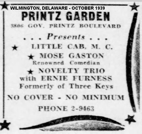 The October 4 Delaware County Daily Times had this to say: "'Slim' Furnace [sic], melodic guitarist of the 'Three Keys' has returned to New York City after a stay of one day in this city. 'Slim,' 'Bob' and 'Bon Bon' moved into the Capitol Theater for a four-week stand on Monday [October 3]." All mentions of their Capitol engagement seem to conflict with each other.