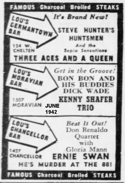 I have no idea exactly what had happened. However, the article continued: "Another slant on the Keys is that temperamentality and prosperity made it necessary for Bob to send an S.O.S. to Philadelphia for Jimmy Pitts, former Showboat star, to take the place of the disgruntled Bon-Bon." (The only prior mention I could find of Jimmy Pitts was in the June 25, 1932 Delaware County Daily Times: "Music for dancing was provided by 'Kid' Traps and his Music Weavers of Wilmington, who were assisted in an inimitable style by Jimmy Pitts, song and dance artist, formerly connected with a large Philadelphia night club." That was, presumably, the Showboat.)