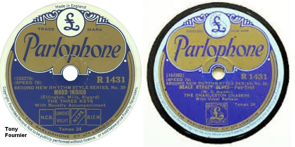 To coincide with their visit, Parlophone Records released both of the Keys' Columbia recordings on their "Second New Rhythm Style" series, although not on the same record. First came "Somebody Loses - Somebody Wins" (the flip was "Goodbye Blues" by Art Jarret). Then came "Mood Indigo" (coupled with "Beale Street Blues" by the Charleston Chasers).