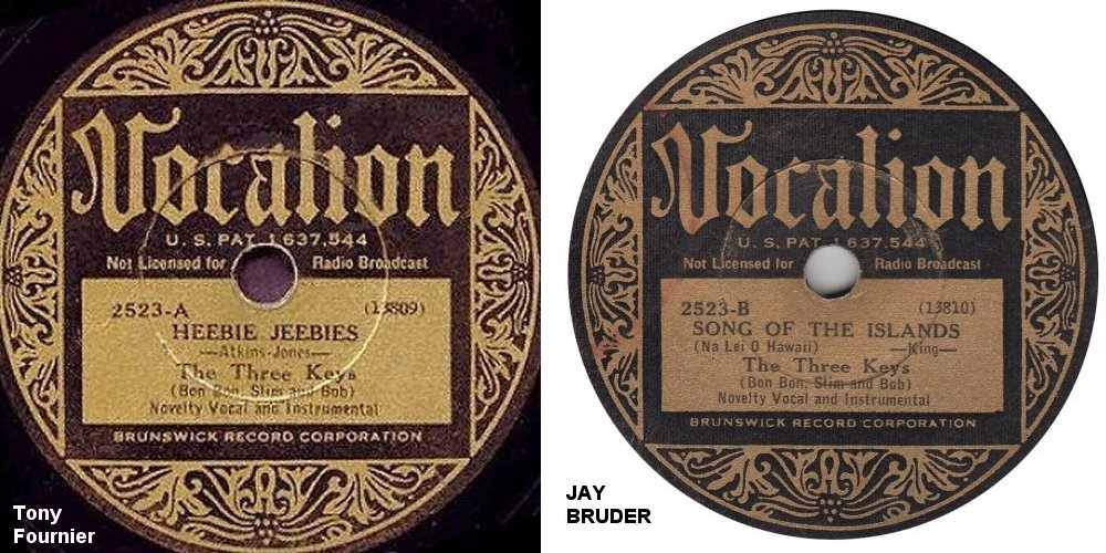 In 1933, many Brunswick artists were switched to its Vocalion subsidiary, including the 3 Keys. So, on August 16, they recorded two songs for Vocalion: "Heebie Jeebies" and "Song Of The Islands (Na Lei O Hawaii)". These were released on September 1.