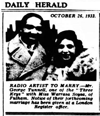 English papers, in late October, said that George Nathaniel Tunnell ("Bon Bon" to you) was supposed to marry Warrasa Soysa. However, I don't think the marriage took place. When he returned to the U.S. the following year, he was by himself. When he registered with the draft in 1940, his wife was Katherine.