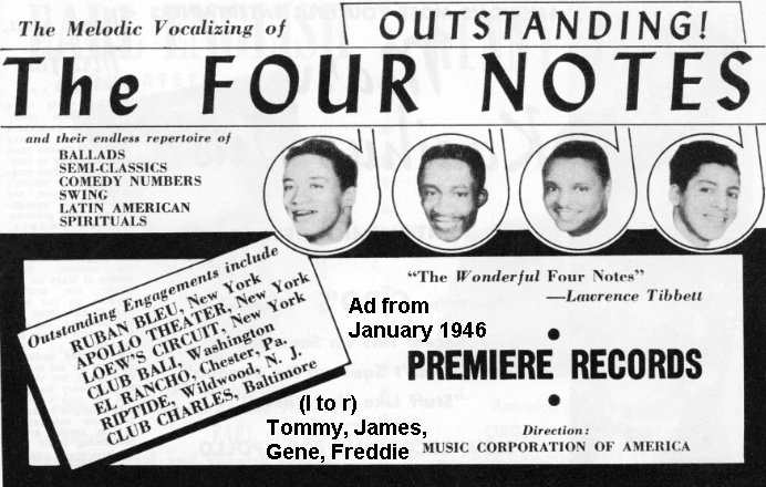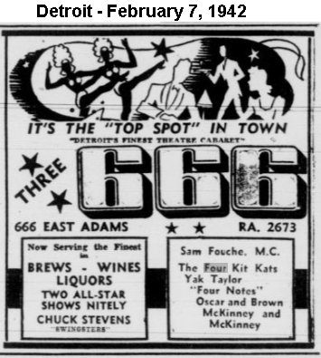 In early 1942, the Four Of A Kind started experimenting with calling themselves the "Four Notes". In February, they appeared at the Club Three 666 in Detroit. The February 28 Pittsburgh Courier said "Four Notes Going Good In Detroit":