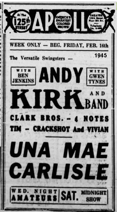 They were back at the Apollo (as the 4 Notes this time) the week of February 6, along with Andy Kirk's band and Una Mae Carlisle.