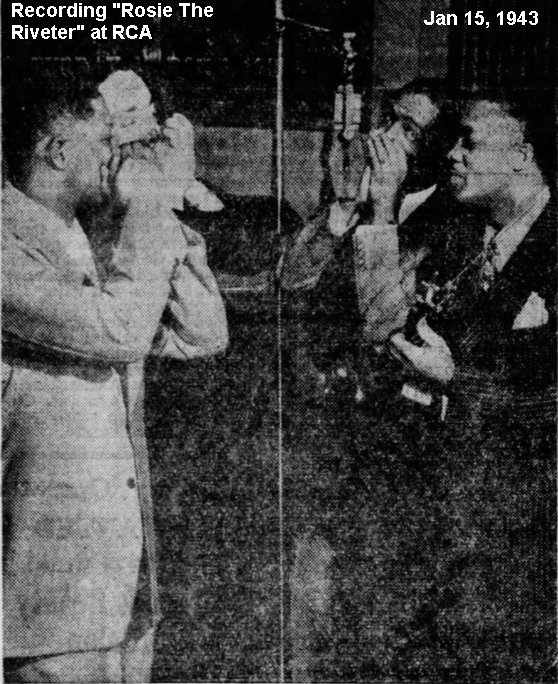 John Jordan recalled that the most popular discs cut by the group were their patriotic war tunes, and the first of these were cut at their second session, held on January 15, 1943. The quartet went to the studio with two other songs rehearsed, but at the last moment, the composer refused to sign a release. Bluebird officials gave then "Rosie The Riveter" and "Rose-Ann Of Charing Cross" and told the group that if they liked the tunes, a new session date would be arranged. The versatile group looked the songs over, fooled with them for a half hour, and then informed Bluebird that another hour of practice was all the time they needed. They went on to cut them both in only one take apiece! While they were geared up for action, they also waxed "I Had The Craziest Dream" and "Ten Little Soldiers (On A Ten Day Leave)".