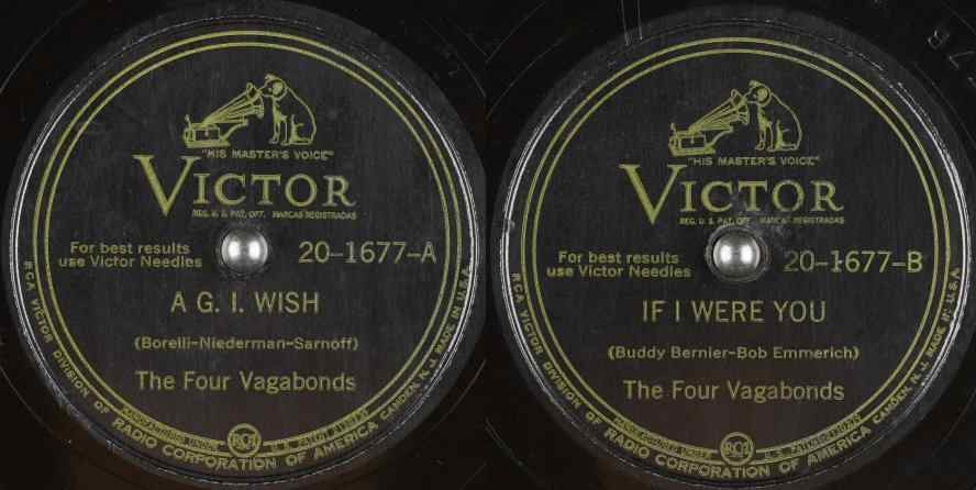 Their final Victor session was held on May 12, 1945, at which time they did two more tunes: "A G.I. Wish" and "If I Were You". These were coupled for a June 1945 release, this time on the parent Victor label.
