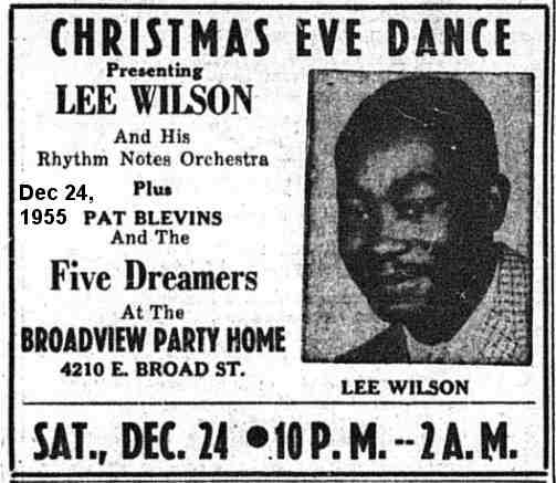 Although I can't find any ads, I was told that they also appeared at the Pythian Ballroom, the Cadillac Club, Valley Dale, the Club Copa, and the Neighborhood House. They also did a lot of dances with DJ Eddie Saunders, who was Central Ohio's first black DJ, on WVKO (the Voice of Kolumbus, Ohio, 1580 on your AM dial).