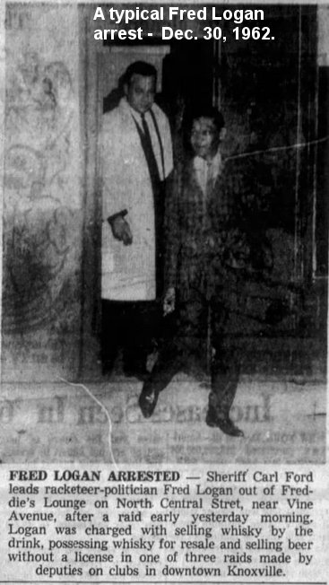 Just to put him in perspective, the July 8, 1959 Knoxville Journal called Logan "one of the city's more widely known racketeers". Since he had ties to local government, nothing serious ever happened to him. Their August 18 edition said of him: