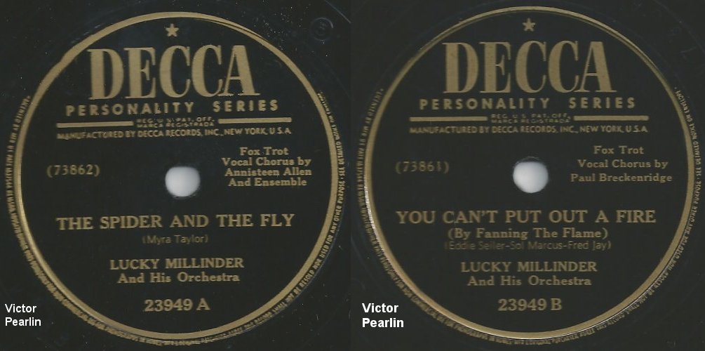 Also in May, Decca issued "The Spider And The Fly", backed with the Paul Breckenridge-led "You Can't Put Out A Fire (By Fanning The Flame)". "The Spider And The Fly" had potential; it was also recorded by the Aristo-Kats, Stan Kenton, and Myra Taylor.