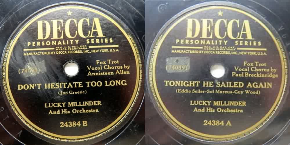 Annisteen's "Don't Hesitate Too Long" was released on Decca in March 1948. The flip was "Tonight He Sailed Again", featuring Paul Breckenridge.