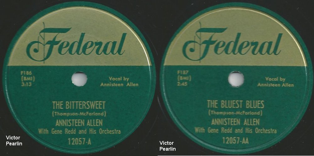 On October 31, Annisteen (with the Gene Redd Orchestra) recorded two more songs for Federal: "The Bittersweet" and "The Bluest Blues".