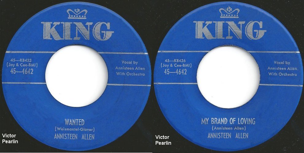 In January 1952, King released "The Right Kind Of Lovin'", backed with "It's Been A Long, Long Time". The latter song has Melvin Moore, John Sellers, and Annisteen mostly singing in unison. She's only heard on a couple of lines and her name doesn't appear on the label (theirs do). It doesn't seem like the record was reviewed.