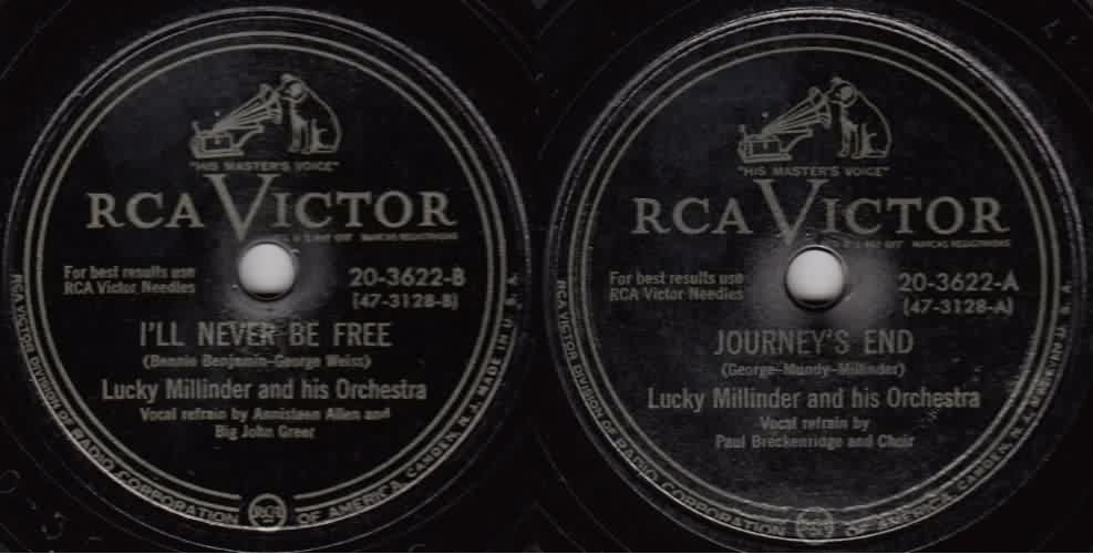 In December, RCA released "I'll Never Be Free", backed with Paul Breckenridge's "Journey's End". It was reviewed in the January 21, 1950 Billboard, with "I'll Never Be Free" receiving an 86: "Should be a big rhythm and blues disking. It's a good new Benjamin-Weiss ballad which is delivered in quasi-spiritual style in a duet and choral production."