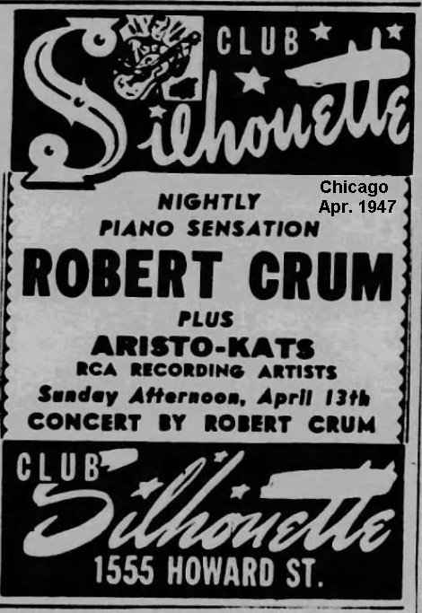 In early April 1947, the Aristo-Kats ("RCA Recording Artists") appeared at the Club Silhouette in Chicago. This is the only appearance advertisement for the group in their entire career.