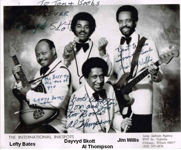 Lefty Bates then re-joined the Hi-De-Ho Boys, remaining with them until at least 1950 (when they cut a single record for J. Mayo Williams' Chicago-based Harlem label). In the 1950s, Lefty Bates and Quinn Wilson ended up in the Vee-Jay house band. As a session musician, he'd back up many Chicago groups, including the Flamingos, the Moroccos, and the Impressions. He also put together some bands (for example: "Sad And Lonely" - Lefty Bates Combo - Club 51, 1956; "Chicago Cha Cha" - Lefty Bates & His Band - United, 1957; "Am I Blue" - Lefty (Guitar) Bates & His Recording Band - Mad, 1959). In the 1970s and 1980s, he led the International Ink Spots (and, of course, he was one of the dozens who tried to pass himself off as an "original" Ink Spot).