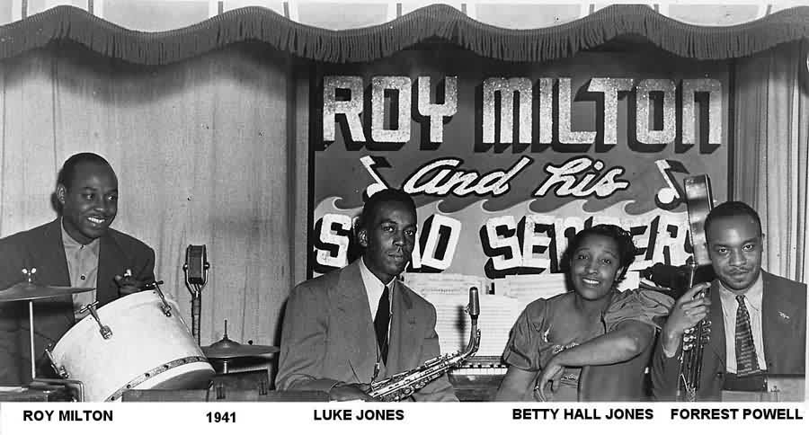 Back in Los Angeles, Betty hooked up with Roy Milton's Solid Senders in 1937. At the beginning, it was Roy Milton (drums), Betty Hall (piano), Little Joe Walker (sax and clarinet), and Fred Mason (trumpet). She and Walker did most of the arranging. By 1941, the members had become: Roy Milton (drums), Betty (piano; by this time, Betty Hall Jones), Luke Jones (alto sax; not the man she married), and Forest Powell (trumpet). Unfortunately, she and Milton had some sort of disagreement and she had left him by late 1941.