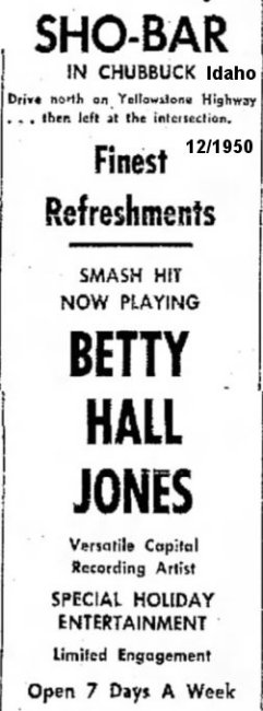 In late March 1952, she was back at the Sho-Bar, in Chubbuck, Idaho for a month.