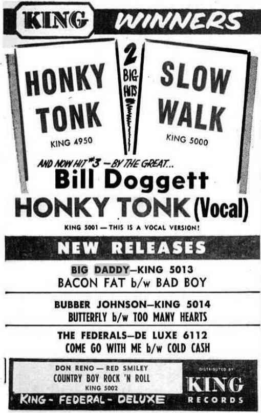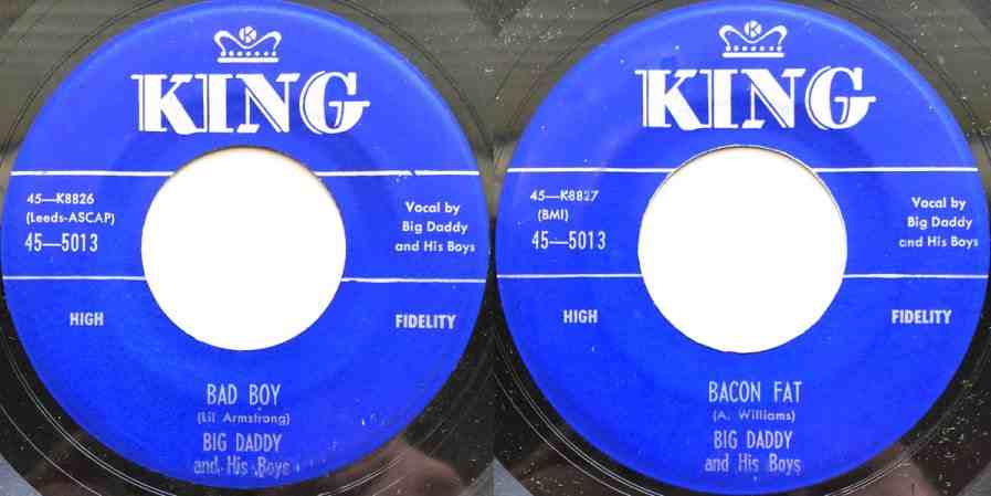 January 1957 started off with Bob releasing "Bad Boy" and "Bacon Fat" on King. (These were covers of songs by the Jive Bombers and Andre Williams respectively). The credit on these went to "Big Daddy And His Boys" (whoever they might have been). They didn't get great reviews in the February 9 Billboard: