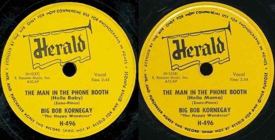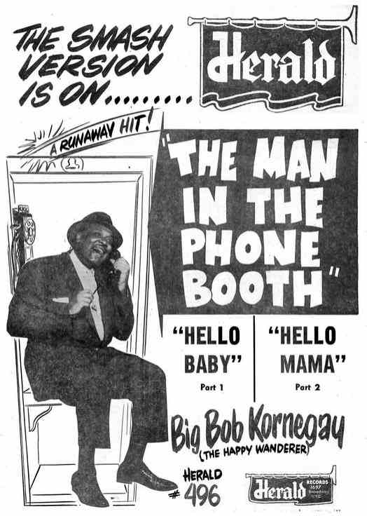 Bob Kornegay, while under contract to Herald, recorded "Man In The Phone Booth" for Flair-X. The disk started to move in a few cities, and Herald got wind of it. Their first thought was to slap an injunction on their competitor. After mulling the situation and talking it over with Flair-X, they thought of a better idea. They brought Kornegay into a studio and had him cut the same tune for them, even going so far as to assemble the same musicians who had been on the earlier date.