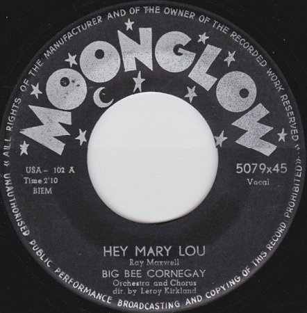 I have to assume that "Hey Mary Lou" and "Exposition Rock" had also been recorded for Go Records. Actually, considering the numbers that appear on Champ and Moonglow labels, I'm tempted to think that "Hey Mary Lou" and "Exposition Rock" were either issued as Go 102 or were planned that way and then abandoned.