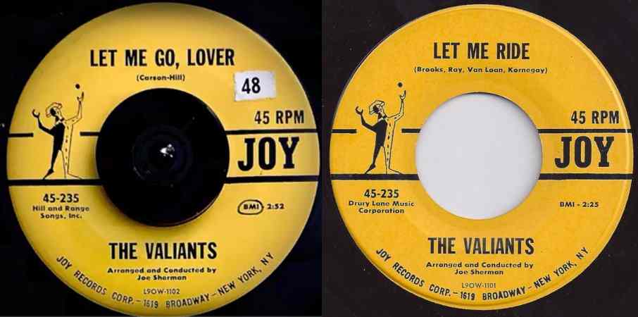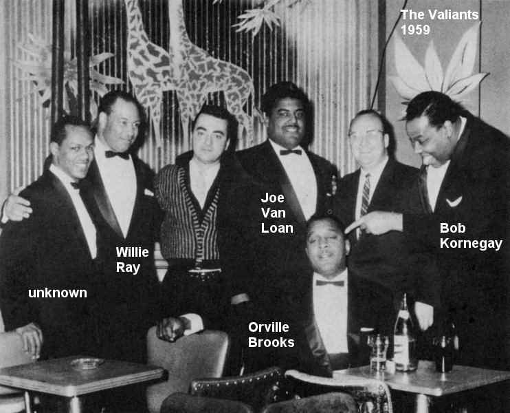 Bob Kornegay's last known recording was as part of the Valiants, a group consisting of himself, Joe Van Loan, Willie Ray, and Orville Brooks. The sides were the standard "Let Me Go, Lover" and "Let Me Ride", which was written by all four singers. They were released in September 1959 and reviewed in the January 4, 1960 Billboard. It was a Billboard Pick, but got no rating: