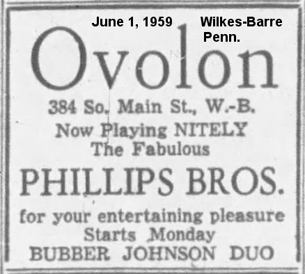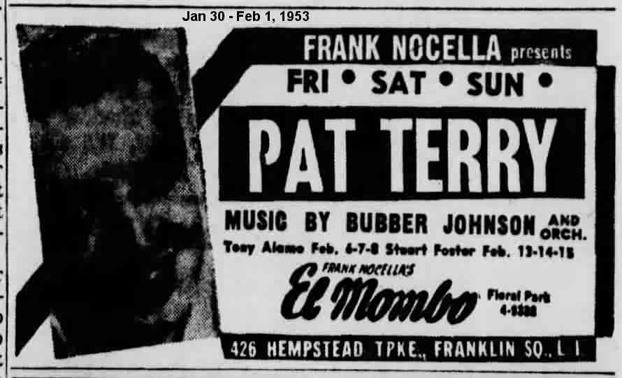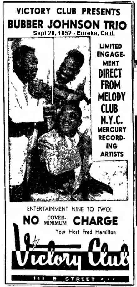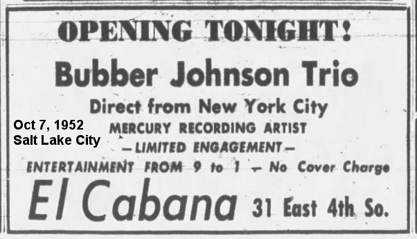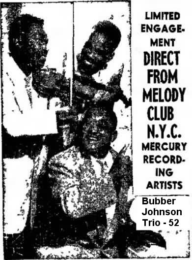 From January 30 through February 1, 1953, "Bubber Johnson And Orch" appeared at the El Mombo club in Franklin Square, Long Island. Was this the Trio? Who knows?