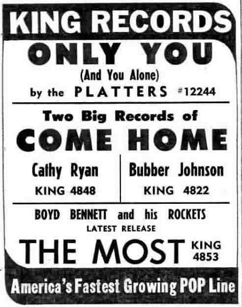 King issued "Come Home" and "There'll Be No One" in August 1955. Hedging their bets, they also issued a version of "Come Home" by Cathy Ryan.