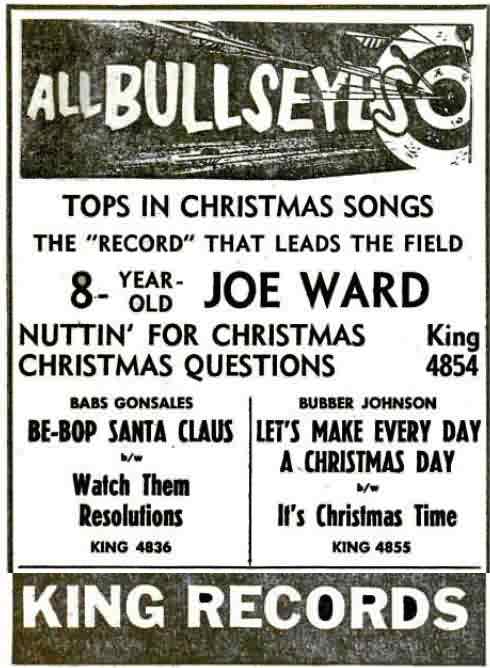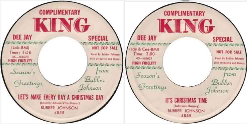 King released "Let's Make Every Day A Christmas Day" and "It's Christmas Time" in November. Their DJ copies were festive with "Season's Greetings from Bubber Johnson" on the green and red labels.