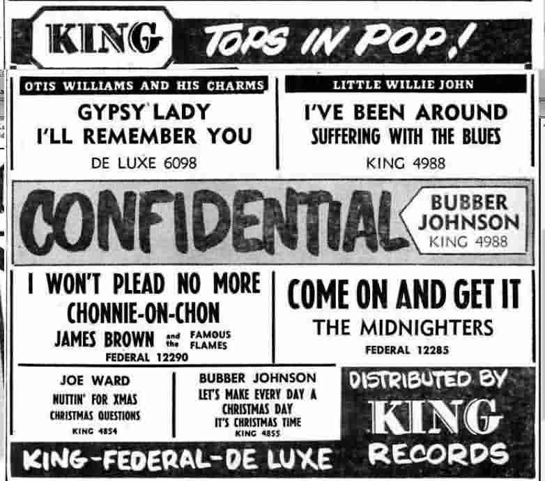 And that's the last we hear of Bubber for another entire year, until he turned up to record a single song ("Goody Good Love") at a King Records session in New York, on March 8, 1955. Here's what I said in my Otis Williams & the Charms article about that session: