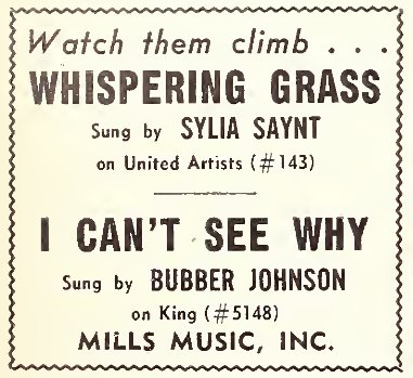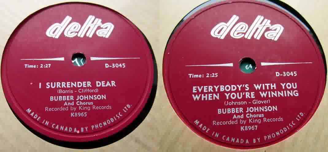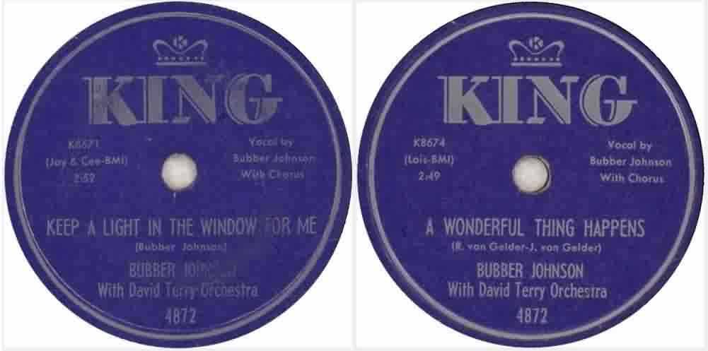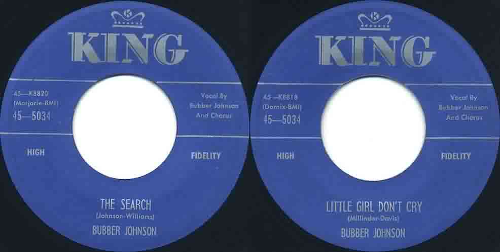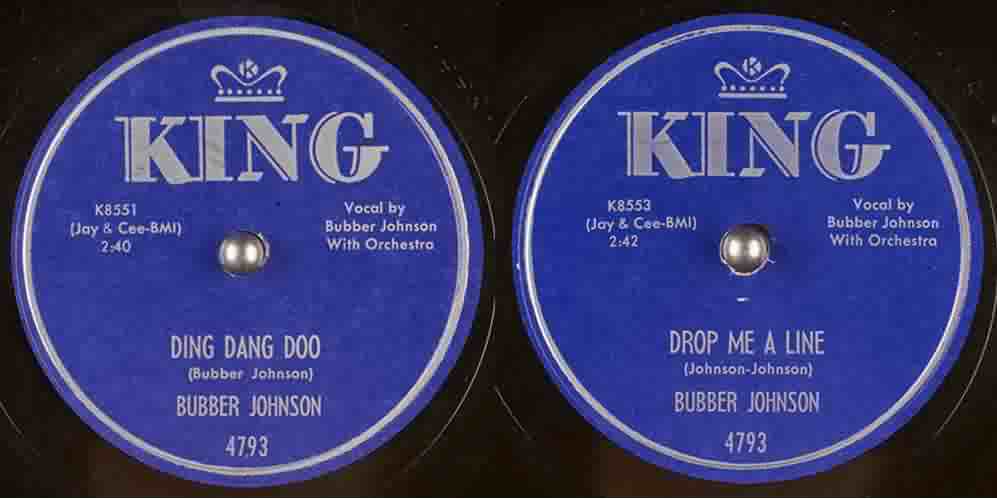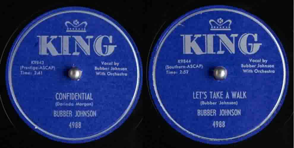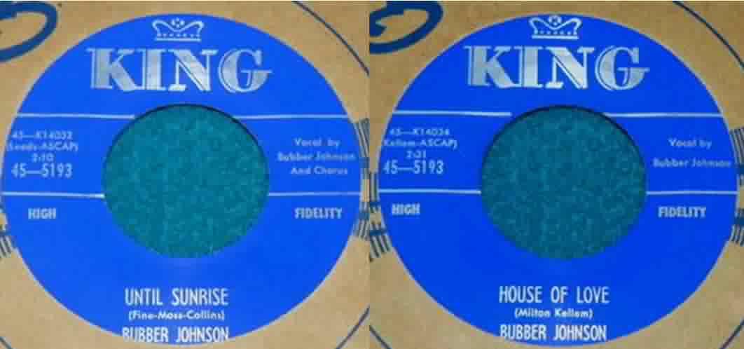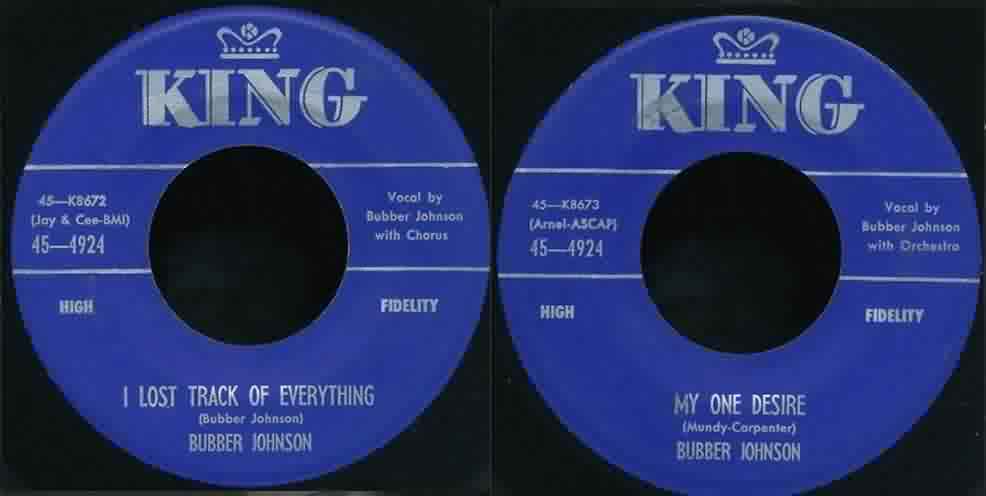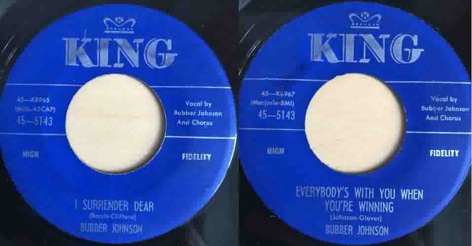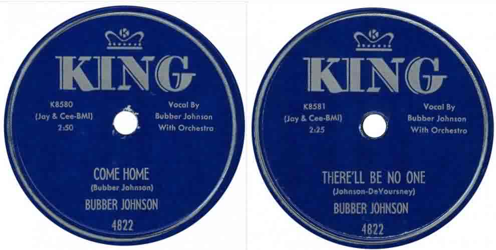 It's very hard to characterize Bubber Johnson. As far as I'm concerned, he has a very nice voice. But that's only part of the story on a recording. Most of his records have violins, a harp, and [shudder] the Dread Chorus. Because of this, it's hard to determine who his audience was (or was supposed to be). That sound couldn't have been directed at teenagers. Based on record reviews, he was supposed to have competed with Nat "King" Cole; if that was the intention, it wasn't successful. King Records, however, was determined to make a star out of him; almost every track he ever recorded for them was released on a single.