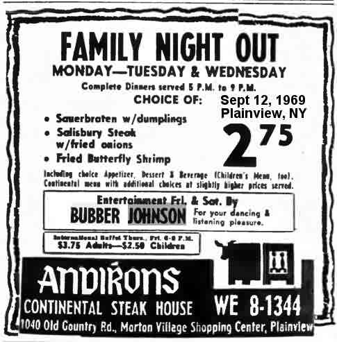 September 1969 found him at Andirons Continental Steak House in Plainview, New York (in Long Island). He was still there in July 1970.