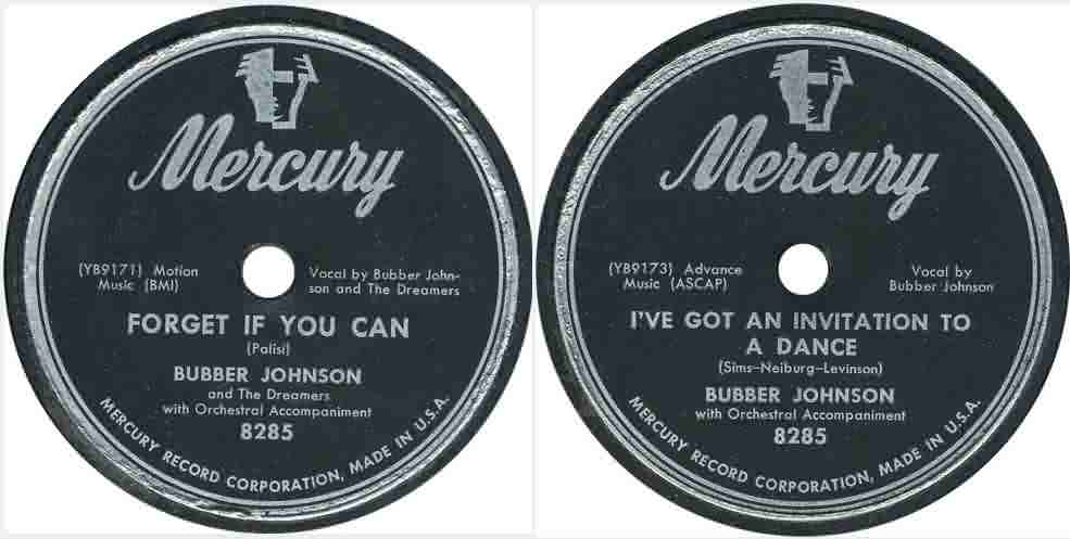 More to the point, the master numbers immediately after those were for Bubber Johnson's session. At it, Bubber recorded four songs: "Forget If You Can", "A Million Times Ago", "I've Got An Invitation To A Dance", and "You're Driving Me Crazy". On "Forget If You Can", Bubber is backed up by the "Dreamers", who kind of sound like the same bunch that was backing up Wini Brown, although Mercury managed to reduce them to Dread Chorus status. (They weren't the Warren Suttles Dreamers, which were also recording for Mercury.)