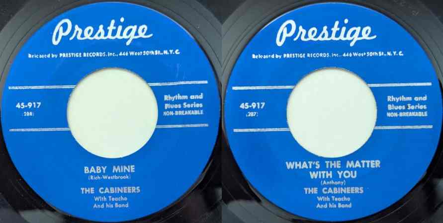 Therefore, it was the team of Westbrook, Furman, Peele, and Copney that recorded the last two Cabineers songs: "Baby Mine" and "What's The Matter With You" on December 20, 1951. Both were led by Maggie Furman, with a prominent assist from Sam Copney on "What's The Matter With You". This time, the backing group was bandleader/pianist Teacho Wiltshire's Band (whose only other known member at this time was Lem Davis on alto sax).
