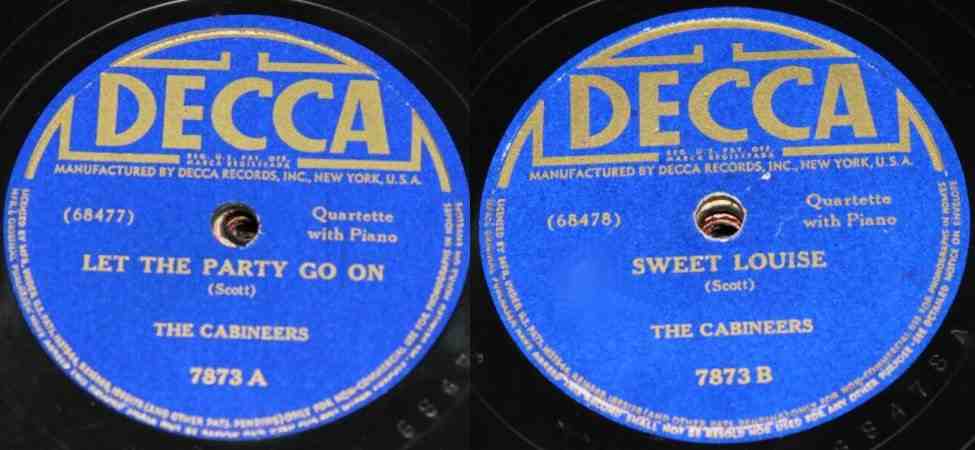 The identity of the Cabineers, one of the all-time vintage vocal harmony groups has been a mystery over the years. Admired by collectors today, all but one of their platters were recorded on good old "Big Ten Inch" 78 rpm.