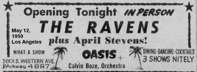 On May 12, 1950, Calvin and his band opened at the Oasis (Los Angeles), along with the Ravens and April Stevens (who was noted for her risqué songs).