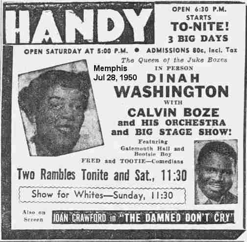 Then it was back on the road, where he and Dinah appeared at the Handy Theater in Memphis on July 28-30. On August 1, it was the City Auditorium in Atlanta. August 16 found them at the Trianon Ballroom in Oklahoma City. The August 12 Oklahoma City Black Dispatch had a little blurb about "Diana Washington" and Calvin. [You sometimes get the feeling they aren't trying very hard, don't you?]