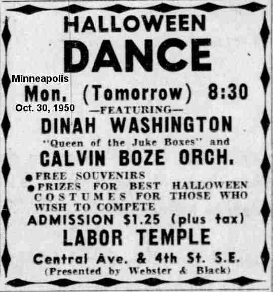 By October 30, when he played a Halloween dance at Minneapolis' Labor Temple, he was back with Dinah Washington. The next night, they were at Dreamland, in Omaha.