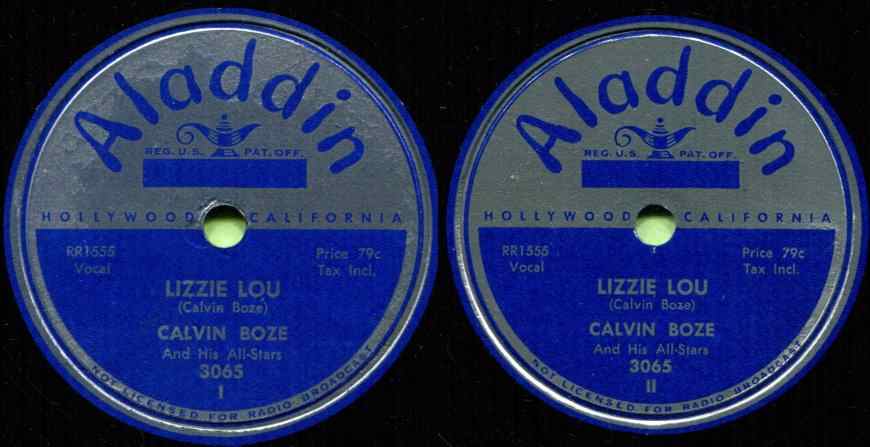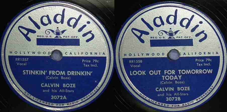 In October 1949, "Satisfied" and "Working With My Baby" were issued on Score, an Aladdin subsidiary. Credit went to "Calvin Boze And His All Stars", as it would on all Aladdin releases but one.