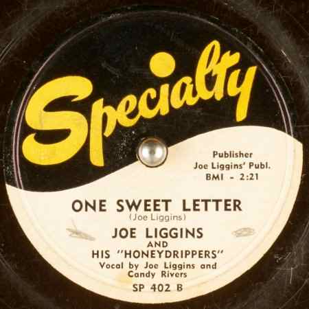 Specialty hurried out another disc in April: "One Sweet Letter", backed with "Whiskey, Gin & Wine" (with vocal by Joe). They were reviewed in the April 14 Cash Box and the April 28 Billboard. Of "One Sweet Letter", they said: