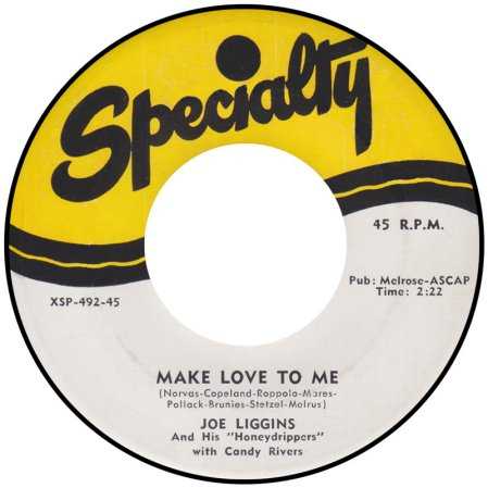 The April 24, 1954 Billboard gave "Make Love To Me" a 75, saying "The pop smash receives a swingy rendition from Liggins and thrush Candy Rivers over a happy backing from the Honey Drippers [sic]. Should get some juke coins." This was definitely the last time her name was associated with Liggins'.
