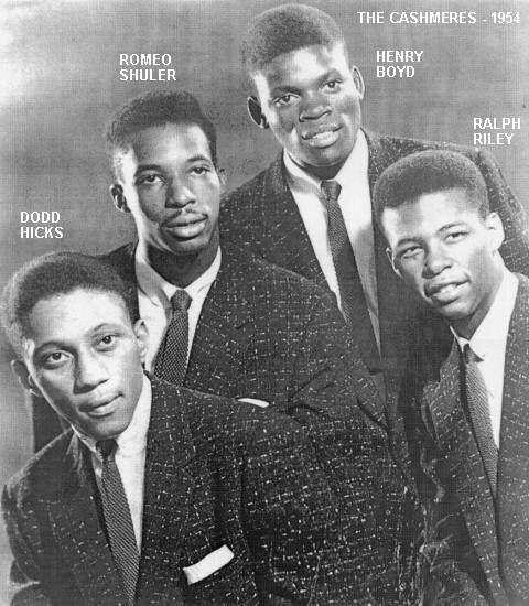 Now that the identity crisis was over, another problem surfaced: since they were young, some of their parents started giving them a hard time. By 1951, both Bobby Arnold and William Butts had dropped out. Dodd knew a bass named Romeo Shuler, Jr. from the neighborhood and brought him on board. Romeo, in turn, knew a tenor named Henry Boyd and soon the Cashmeres were back up to four members. Since both Romeo and Henry were older than Dodd and Ralph, there was no more complaining from parents.