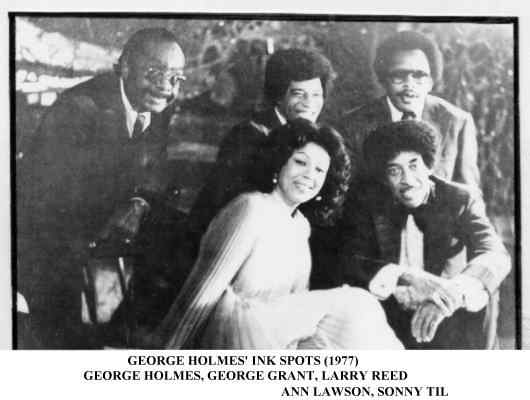 George stayed with the Red Caps for about four years, then went to California. He did solo work in clubs, and also got a "real" job. In 1977, George ran into Sonny Til, who was then singing with George Holmes' Ink Spots. George Grant was soon added to the roster, which was then: Sonny Til (tenor), George Grant (tenor), Larry Reed (baritone), George Holmes (bass), and Ann Lawson. They appeared as both the Ink Spots and the Orioles (when they were the Orioles, Ann would do "guest appearances" with them). In 1978, the four male voices recorded an Orioles album on Dobre. (While Ann Lawson is in the cover photo, she isn't heard on the album.)