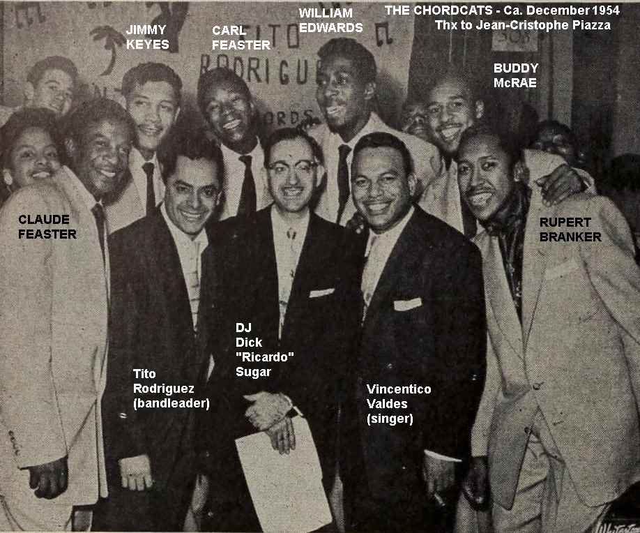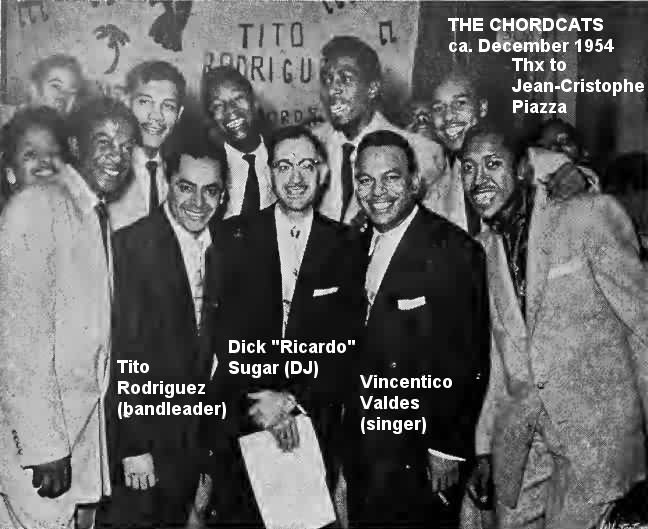 Around December 1954, the Chordcats appeared at a B'nai Brith dance MC'd by DJ Dick "Ricardo" Sugar (WEVD). Others on the bill were bandleader Tito Rodriguez and singer Vincentico Valdes.