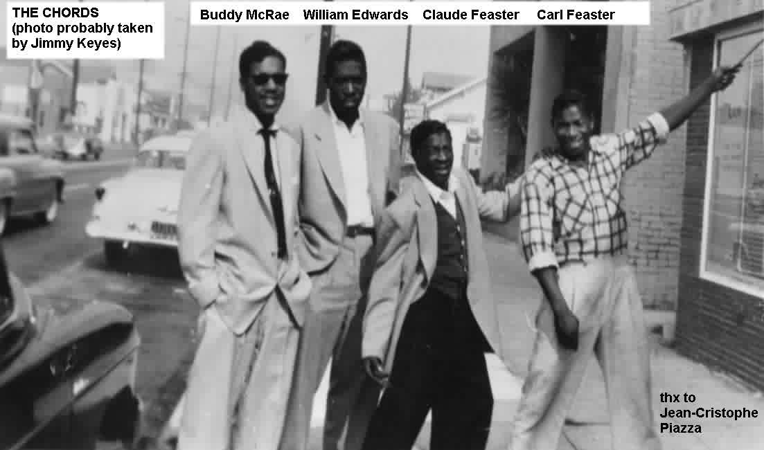 In the Spring of 1956, the guys left Atlantic. Says Buddy, "Atlantic wasn't doing anything for us. We should have gone much further than we did. Atlantic didn't give us their best effort." Strangely, with all the arranging help given to the Clovers and Drifters, the Chords were left to do their own arrangements. When they quit Atlantic, they left Lou Krefetz too, going back to doing their own managing. Actually, at the end, they hadn't been working all that much (not a good thing for full-time singers). Not too long after that, three of their members departed. First, Rupert Branker left, to become the pianist for the Platters. Then Buddy McRae and William Edwards quit also.