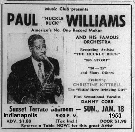 On January 18, 1953, Christine ("The Sittin' Here Drinking Girl") appeared at the Sunset Terrace in Indianapolis along with the Paul Williams band and vocalist Danny Cobb.