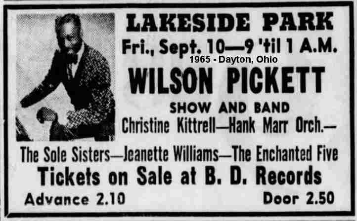 On September 10, 1965, she appeared with Wilson Picket and the Hank Marr Orchestra at Lakeside Park in Dayton, Ohio.
