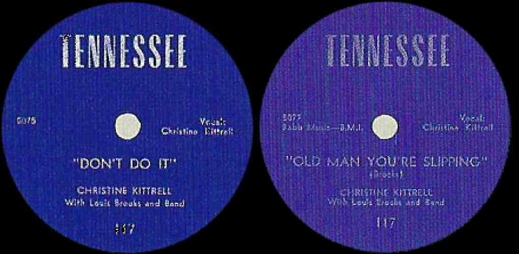 With Louis Brooks' band, she made her first recordings: "Old Man You're Slipping" and "Don't Do It", for the Tennessee label in Nashville in late 1951. They were released around April of 1952. Master numbers indicate that there were at least two other songs recorded then.