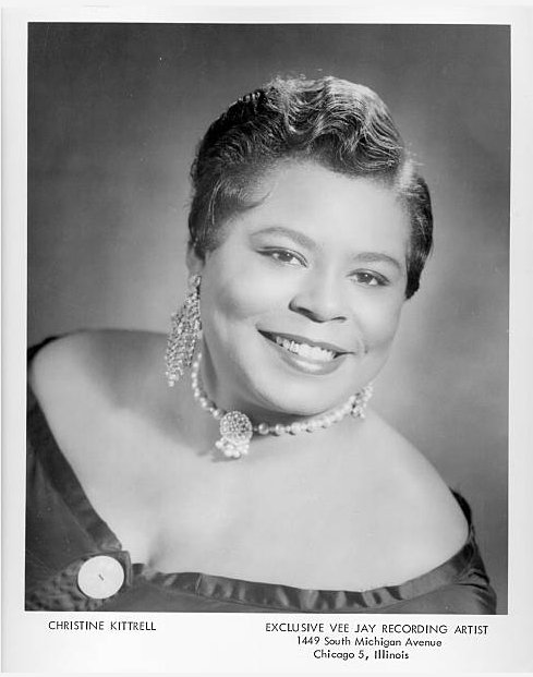 Here's a blurb from the April 22, 1954 California Eagle that's probably the most important item in this whole article: "Christine Kittrell, the blues rhythm thrush making heads turn, and slowing down traffic in the Dunbar Hotel lobby when she strolled through with those crazy 'bird in a gilded cage' earrings." Boy, I wish I could distill a singer's whole career into flowing prose like that.